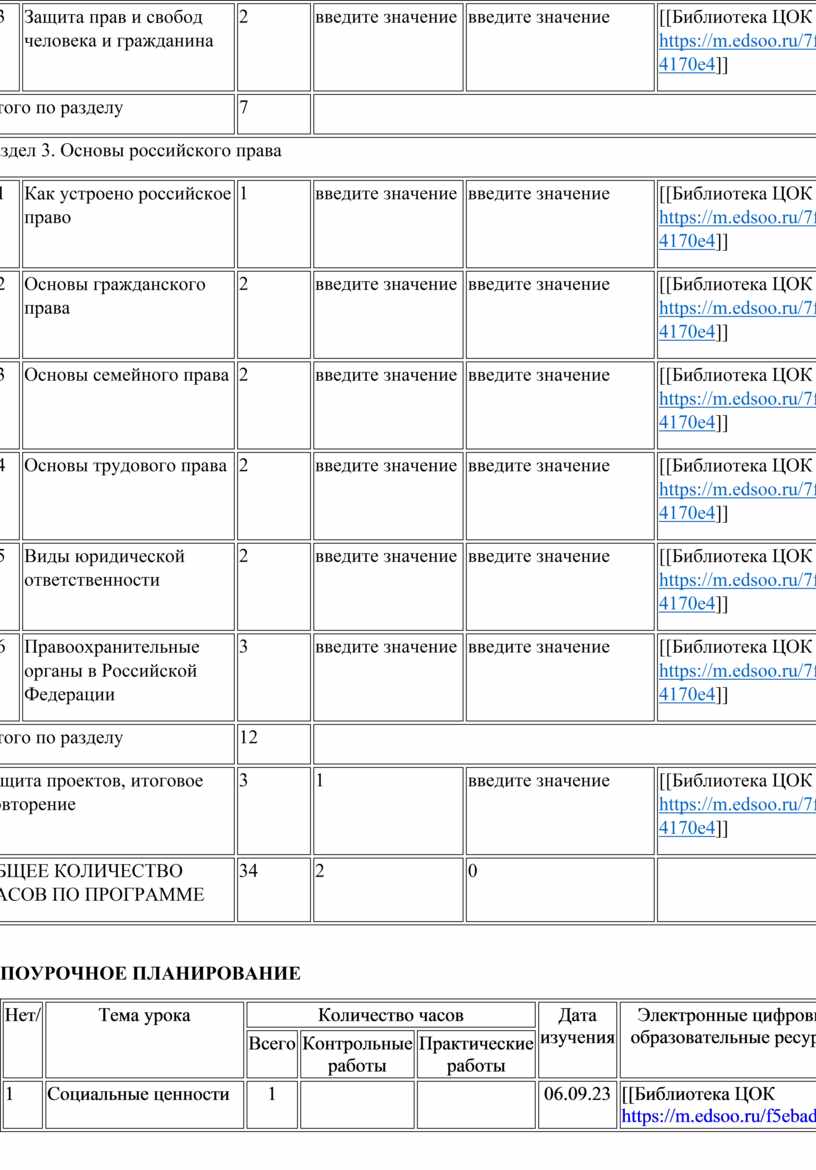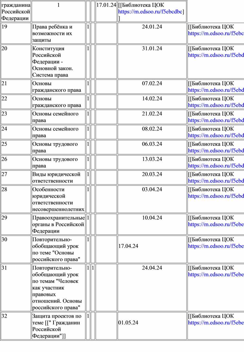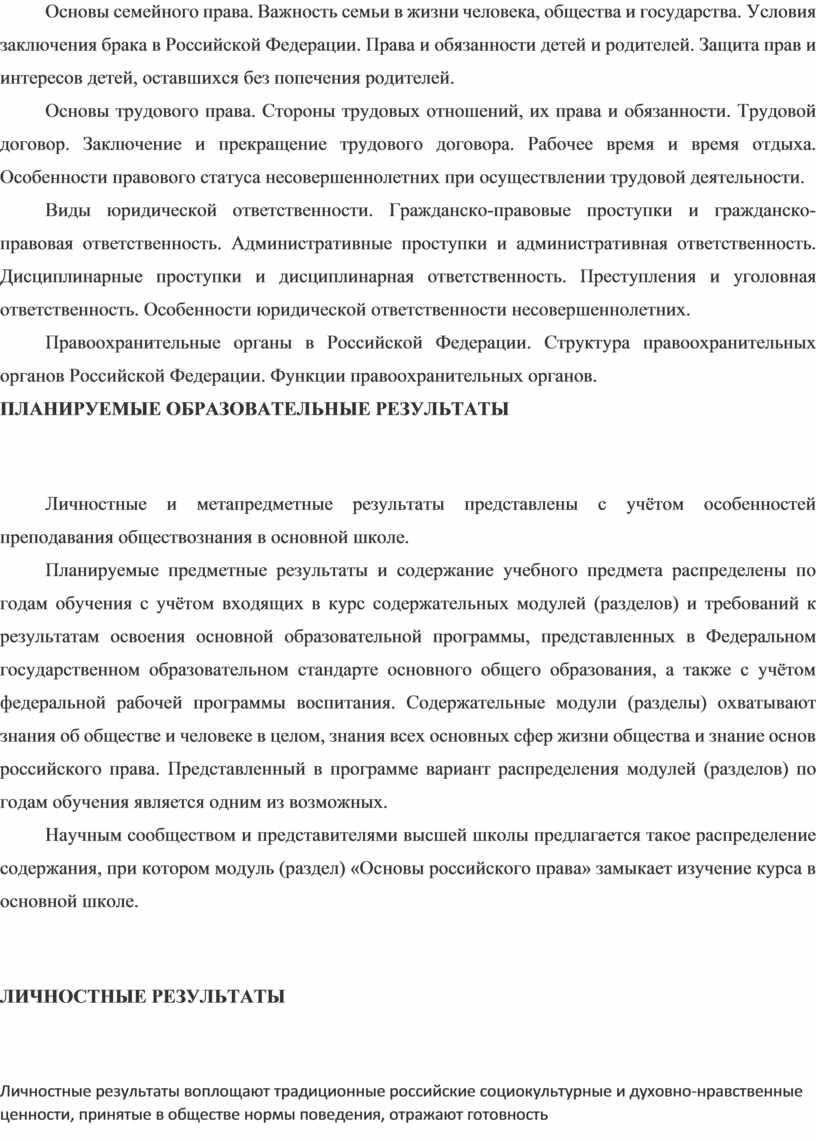 Научным сообществом и представителями высшей школы предлагается такое распределение содержания, при котором модуль (раздел) «Основы российского права» замыкает изучение курса в основной школе.
