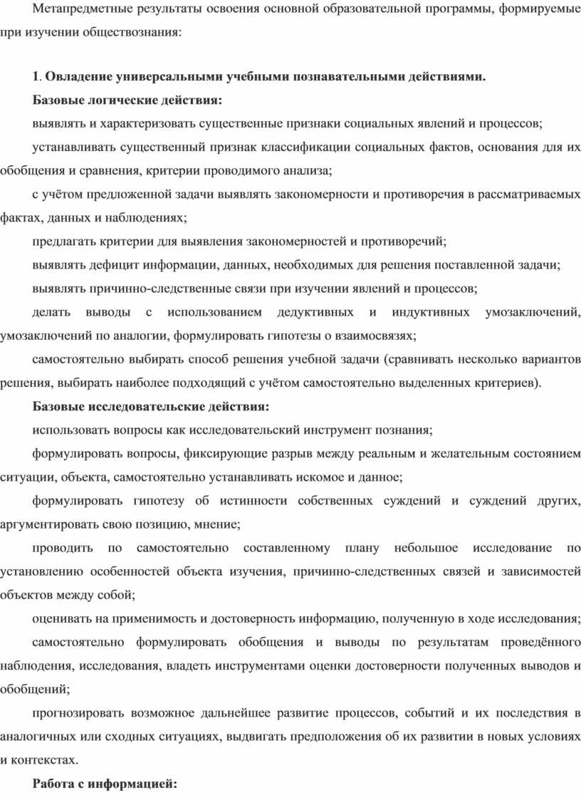 Метапредметные результаты освоения основной образовательной программы, формируемые при изучении обществознания: