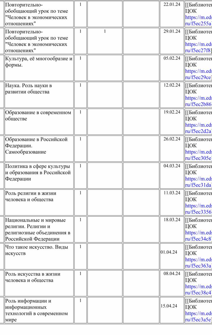Итоговое повторение по темам "Человек в экономике", "Человек в мире культуры" |