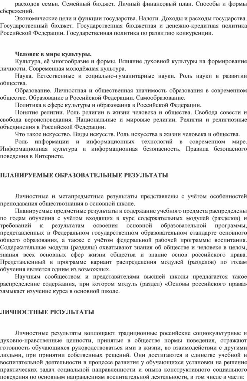 Личностные и метапредметные результаты представлены с учётом особенностей преподавания обществознания в основной школе.