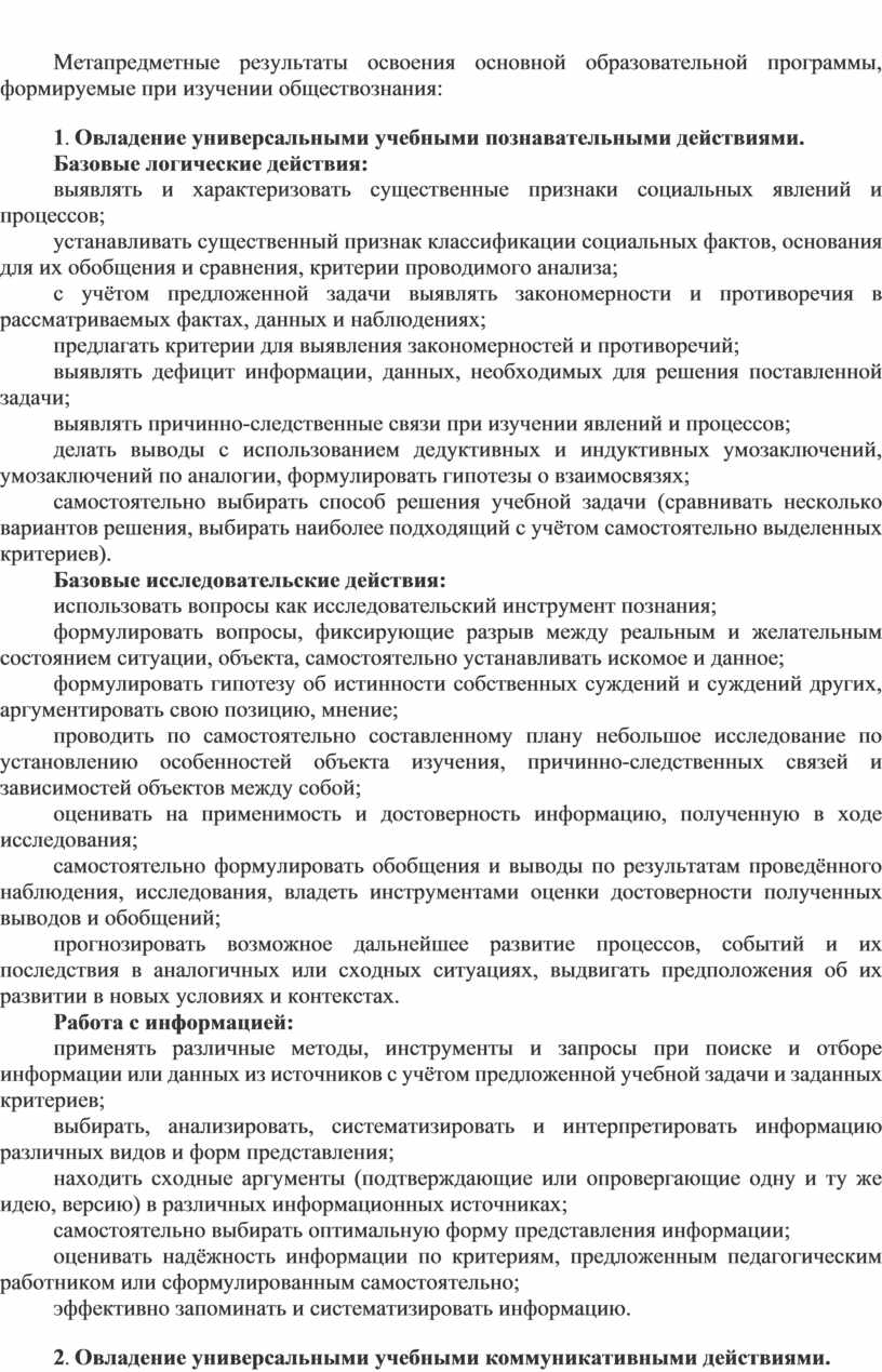 Метапредметные результаты освоения основной образовательной программы, формируемые при изучении обществознания: