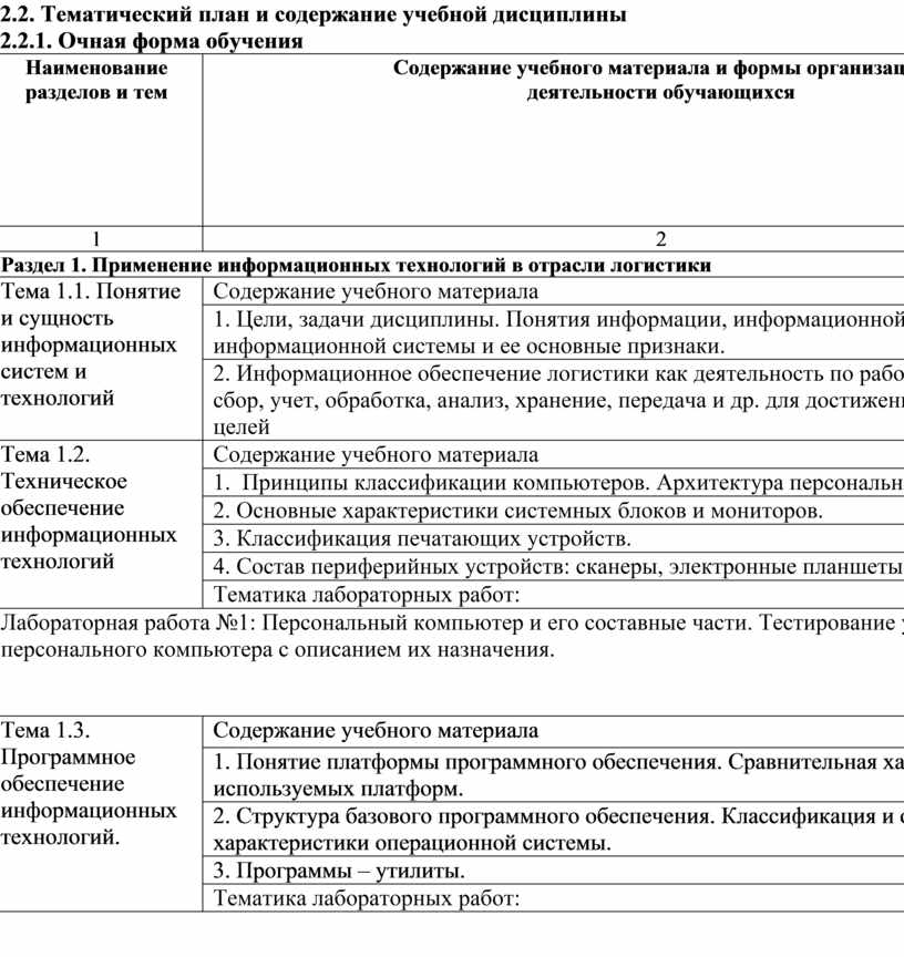 Раздел 1. Применение информационных технологий в отрасли логистики |