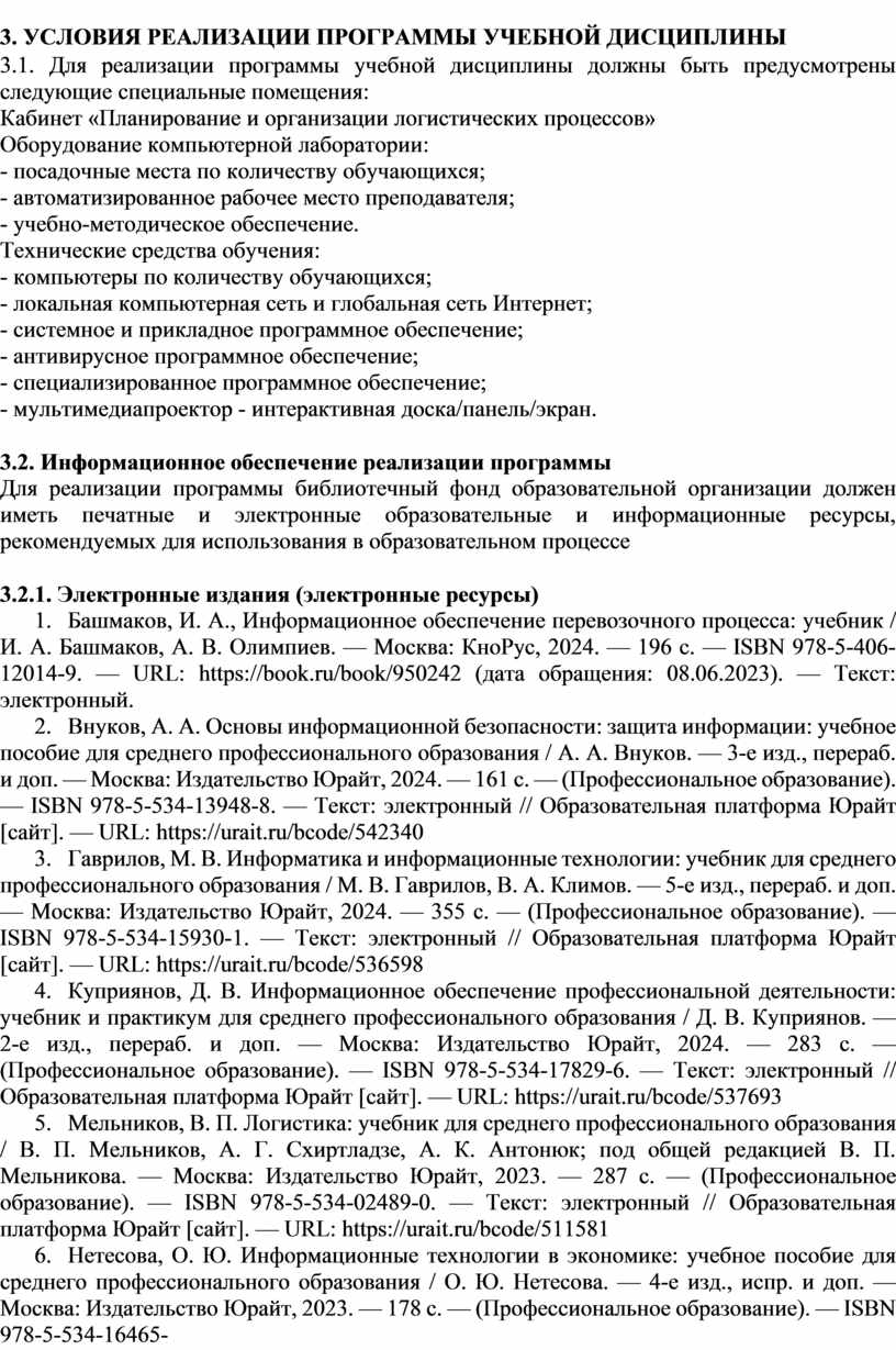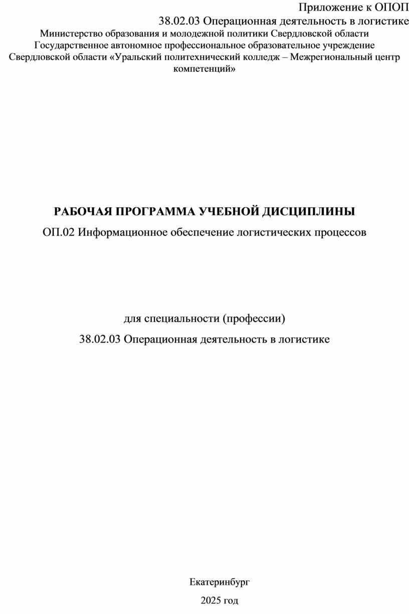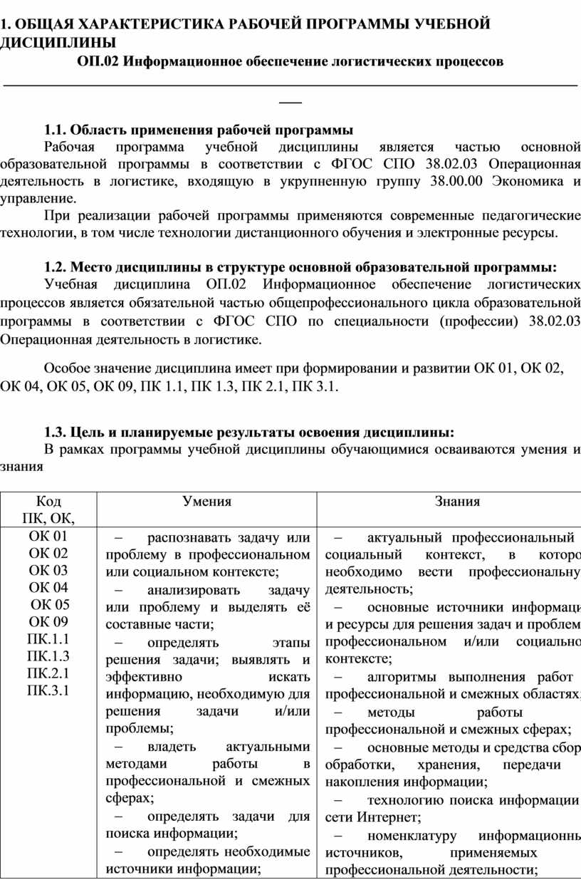 Учебная дисциплина ОП.02 Информационное обеспечение логистических процессов является обязательной частью общепрофессионального цикла образовательной программы в соответствии с ФГОС СПО по специальности (профессии) 38.02.03 Операционная деятельность в логистике.
