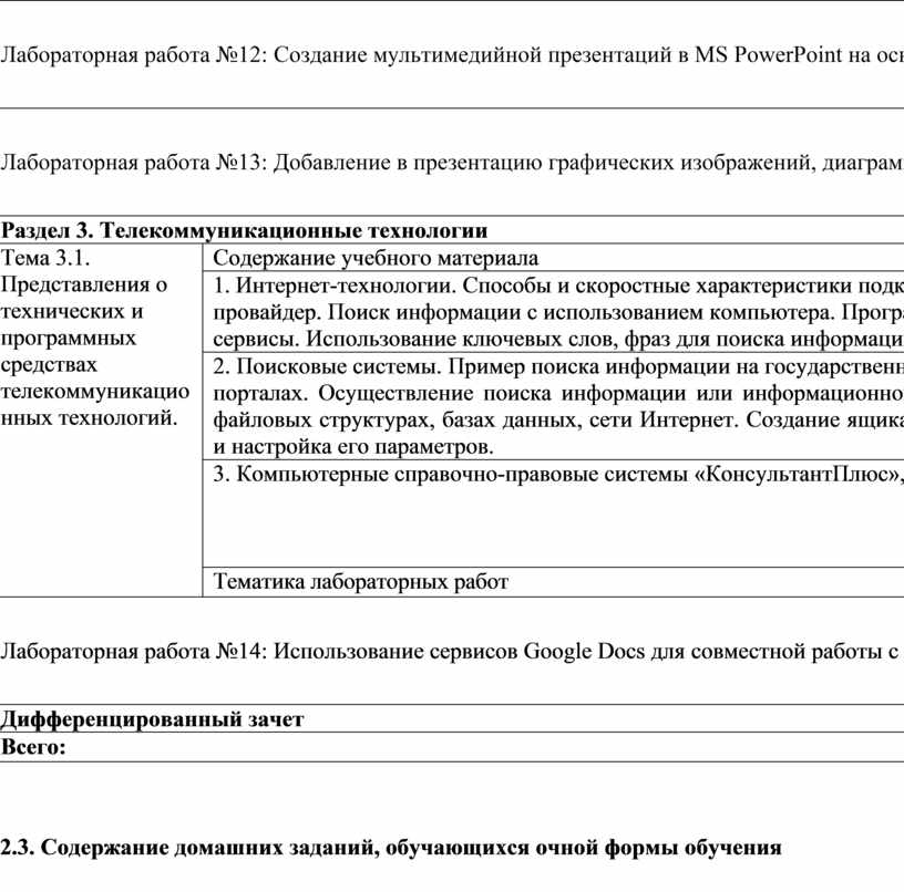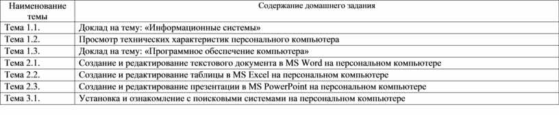 2.3. Содержание домашних заданий, обучающихся очной формы обучения