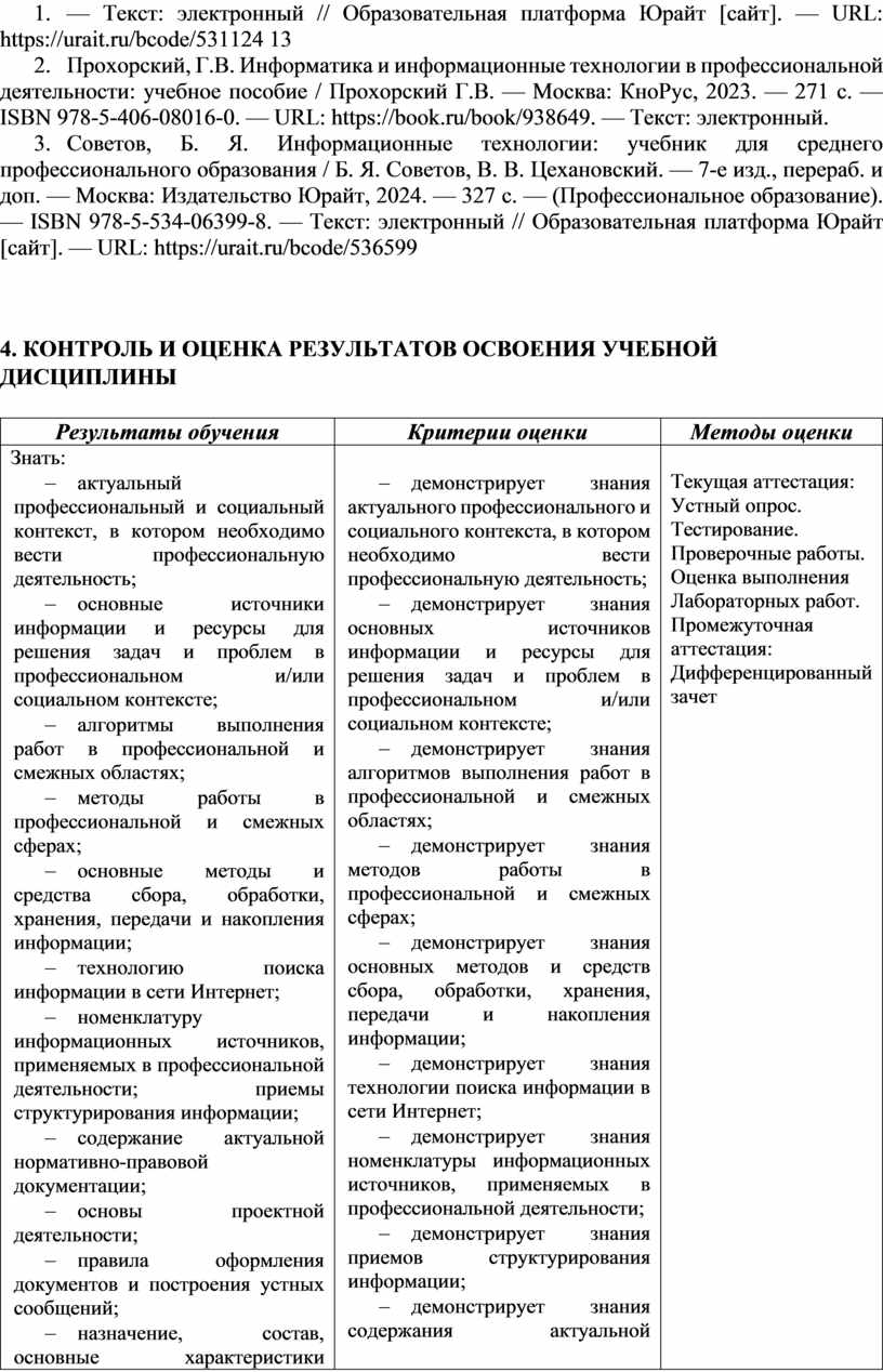 4. Куприянов, Д. В. Информационное обеспечение профессиональной деятельности: учебник и практикум для среднего профессионального образования / Д. В. Куприянов. — 2-е изд., перераб. и доп. — Москва: Издательство Юрайт, 2024. — 283 с. — (Профессиональное образование). — ISBN 978-5-534-17829-6. — Текст: электронный // Образовательная платформа Юрайт [сайт]. — URL: https://urait.ru/bcode/537693