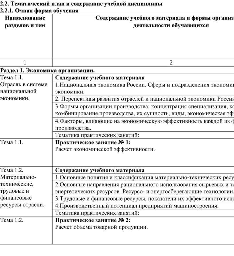 Тема 1.1. Отрасль в системе национальной экономики. |