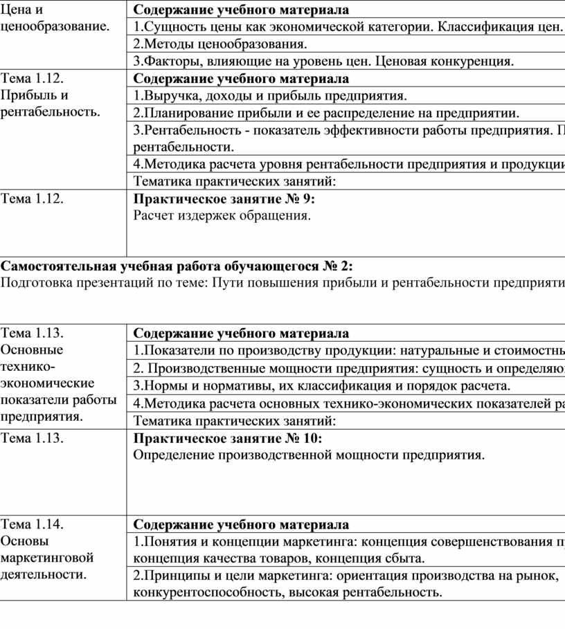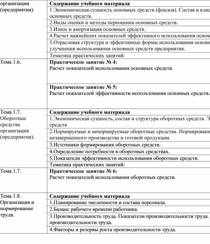 Самостоятельная работа обучающихся: 1. Экономика организации: содержание дисциплины, ее задачи и значение. 2. Состав и структура народного хозяйства России. 3. Основные межотраслевые комплексы экономики России. 4. Организация как основное звено экономики предприятия. 5. Организационно-правовые формы предприятий. 6. Производственная структура и инфраструктура предприятия. 7. Производственный процесс. Формы организации производственного процесса. 8. Производственный цикл. Виды движения при производственном цикле. 9. Поточное производство. 10. Имущество предприятия. Источники формирования имущества предприятия. 11. Основные средства (фонды): сущность, состав, структура, классификация. 12. Оценка и износ основных фондов. 13. Амортизация основных фондов. Методы начисления амортизации. 14. Показатели и пути повышения эффективности использования основных фондов. 15. Оборотные средства: сущность, состав, структура, классификация. Источники формирования оборотных средств. 16. Оборачиваемость оборотных средств. Показатели оборачиваемости оборотных средств. 17. Пути повышения эффективности использования оборотных средств. 18. Нормирование оборотных средств. 19. Сущность, функции и организация финансов на предприятии. 20. Производственная мощность, ее сущность и виды. 21. Производительность труда: сущность, показатели и измерители. Факторы и резервы роста производительности труда. 22. Планирование численности и состава персонала 23. Нормирование труда. Виды времени и норм. 24. Система показателей, характеризующих оборот рабочей силы. 25. Мотивация труда. Сущность, принципы и механизм организации заработной платы на предприятии. 26. Формы и системы оплаты труда. 27. Повременная форма оплаты труда: разновидности, преимущества и недостатки, область применения. Бестарифная форма оплаты труда. 28. Сдельная форма оплаты труда: разновидности, преимущества и недостатки. Область применения. 29. Тарифная система оплаты труда и ее элементы. 30. Планирование фонда заработной платы. 31. Себестоимость продукции (работ, услуг). Виды себестоимости. Факторы и пути снижения себестоимости. 32. Классификация затрат, включаемых в себестоимость. 33. Калькуляция себестоимости. Порядок расчета статей калькуляции. 34. Экономическое содержание, функции цен. 35. Виды цен и их структура. 36. Механизм рыночного ценообразования |