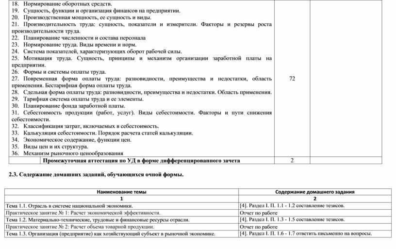 2.3. Содержание домашних заданий, обучающихся очной формы.