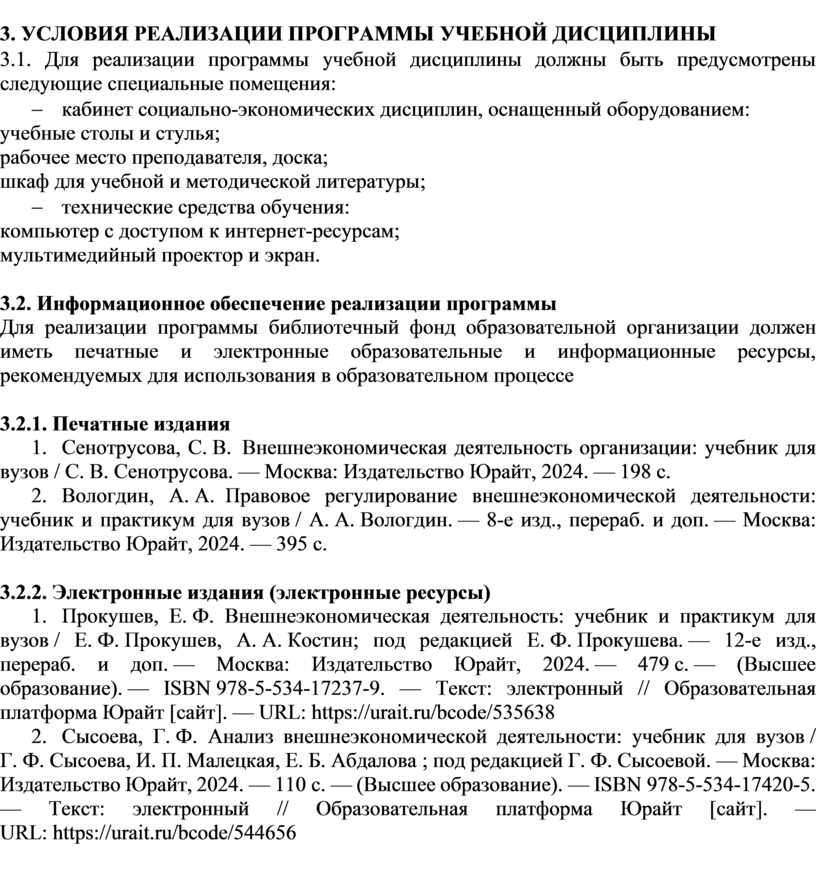 1. Прокушев, Е. Ф. Внешнеэкономическая деятельность: учебник и практикум для вузов / Е. Ф. Прокушев, А. А. Костин; под редакцией Е. Ф. Прокушева. — 12-е изд., перераб. и доп. — Москва: Издательство Юрайт, 2024. — 479 с. — (Высшее образование). — ISBN 978-5-534-17237-9. — Текст: электронный // Образовательная платформа Юрайт [сайт]. — URL: https://urait.ru/bcode/535638