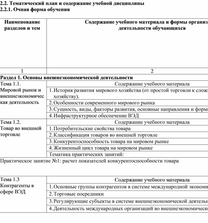Тема 1.1. Мировой рынок и внешнеэкономическая деятельность |