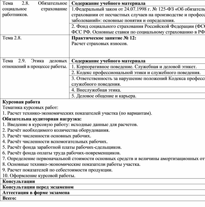 Курсовая работа Тематика курсовых работ: 1. Расчет технико-экономических показателей участка (по вариантам). Обязательна аудиторная нагрузка: 2. Расчёт необходимого количества оборудования. 3. Расчёт численности основных рабочих. 4. Расчёт численности вспомогательных рабочих. 5. Расчёт фонда заработной платы рабочих-сдельщиков. 6. Расчёт фонда оплаты труда рабочих-повременщиков. 7. Определение первоначальной стоимости основных средств и величины амортизационных отчислений. 8. Основные технико-экономические показатели работы участка. 9. Расчет показателей по себестоимости продукции. 10. Оформление курсовой работы. |