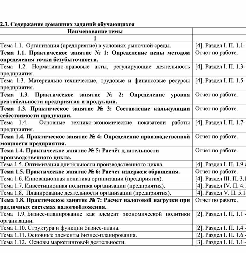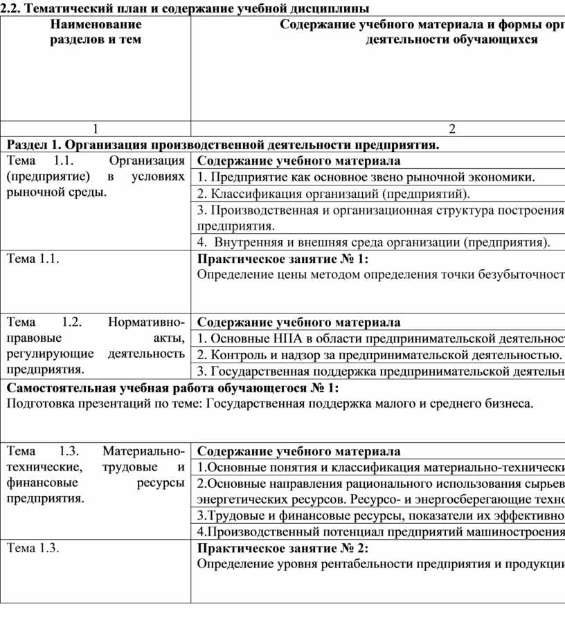 Тема 1.1. Организация (предприятие) в условиях рыночной среды. |