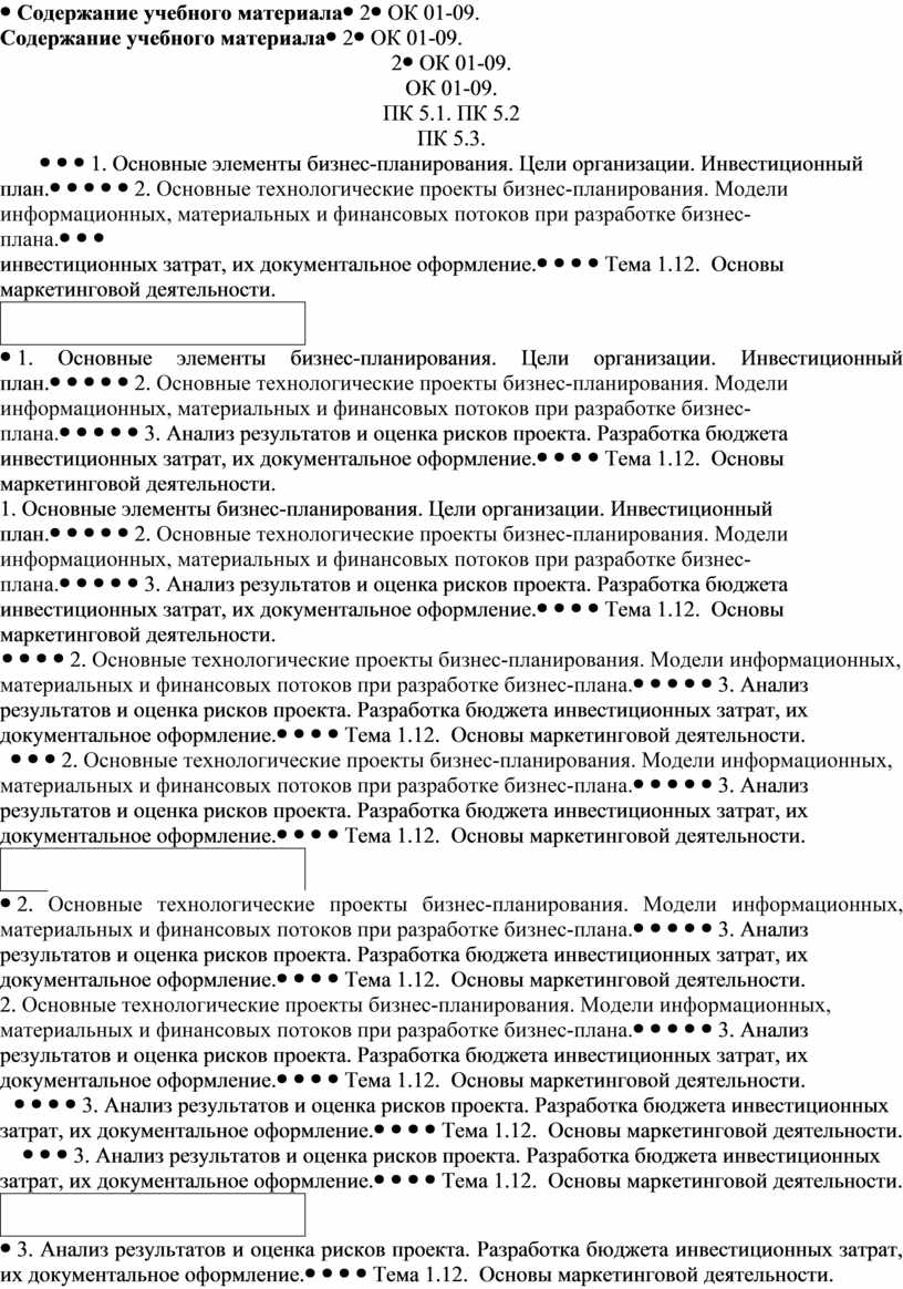 Тема 1.11. Основные элементы бизнес-планирования. |