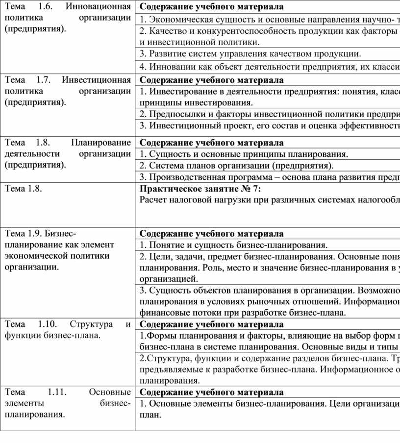 Тема 1.9. Бизнес-планирование как элемент экономической политики организации. |