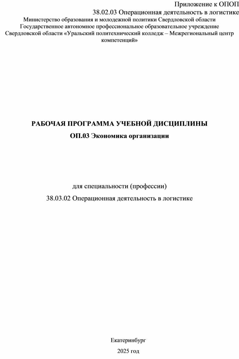 Рабочая программа учебной дисциплины является частью основной образовательной программы в соответствии с ФГОС СПО 38.02.03 Операционная деятельность в логистике, входящей в укрупненную группу специальностей (профессий) 38.00.00 Экономика и управление