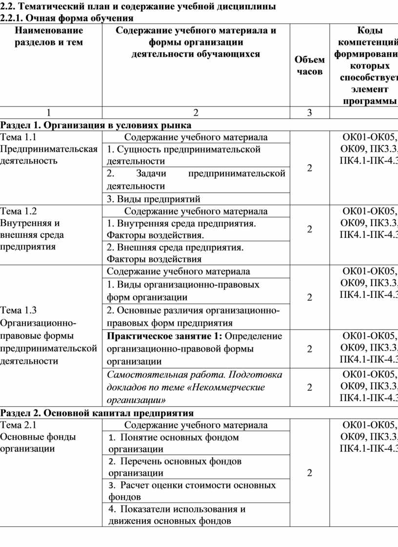 2.2. Тематический план и содержание учебной дисциплины