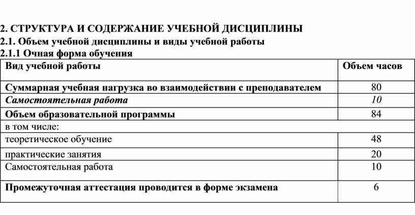 2. СТРУКТУРА И СОДЕРЖАНИЕ УЧЕБНОЙ ДИСЦИПЛИНЫ