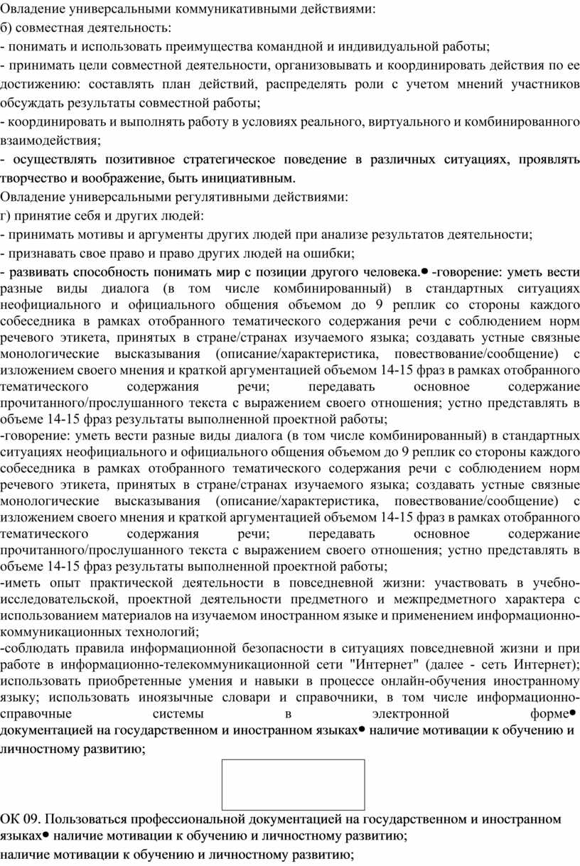 ОК 09. Пользоваться профессиональной документацией на государственном и иностранном языках |