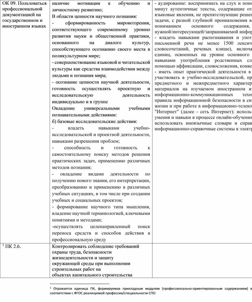 Учебная дисциплина «Иностранный язык в профессиональной деятельности» обеспечивает формирование профессиональных и общих компетенций по всем видам деятельности ФГОС по специальности 08.02.01. Строительство и эксплуатация зданий и сооружений. Особое значение дисциплина имеет при формировании и развитии ОК10. - Пользоваться профессиональной документацией на государственном и иностранном языках.