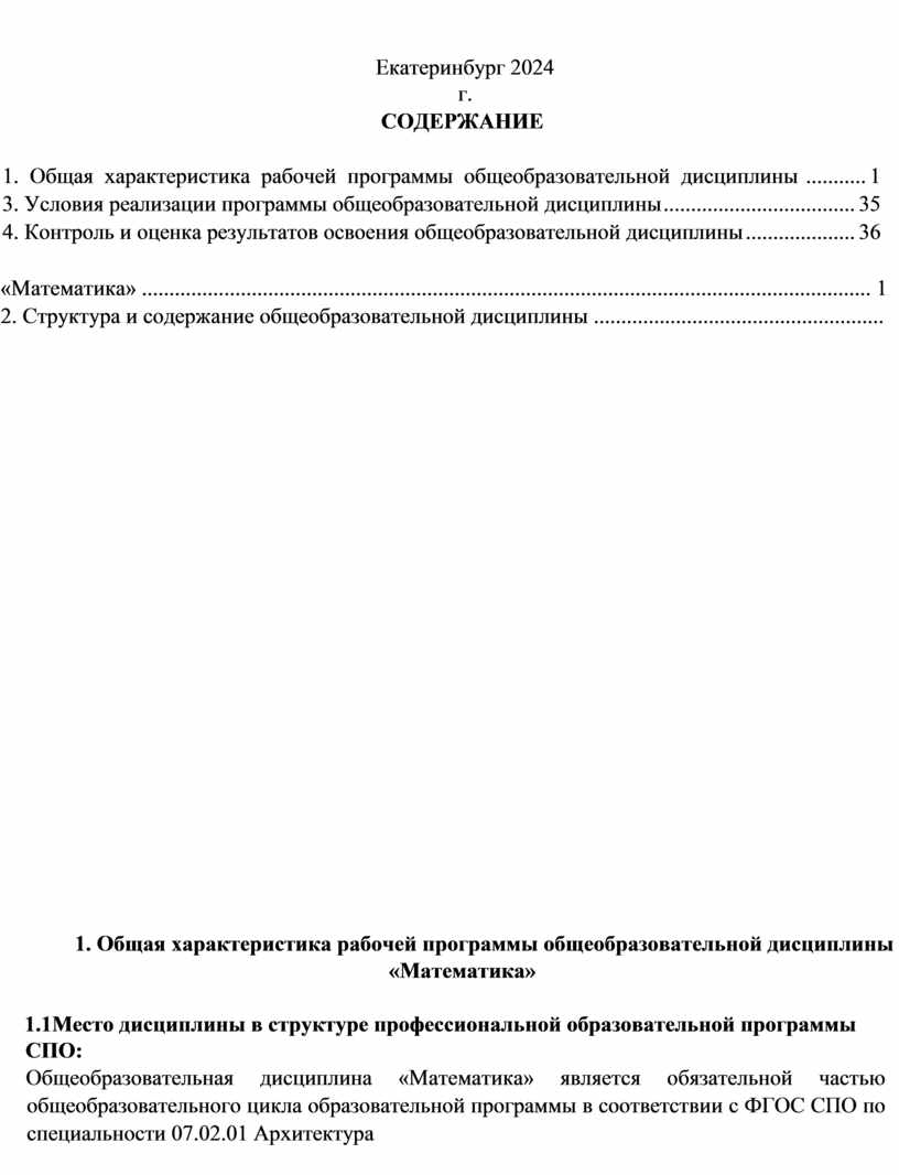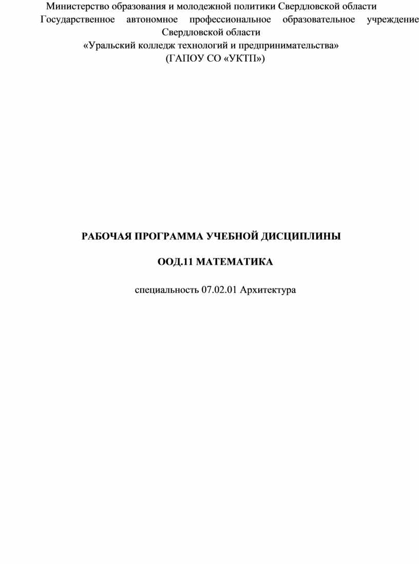 Общеобразовательная дисциплина «Математика» является обязательной частью общеобразовательного цикла образовательной программы в соответствии с ФГОС СПО по специальности 07.02.01 Архитектура