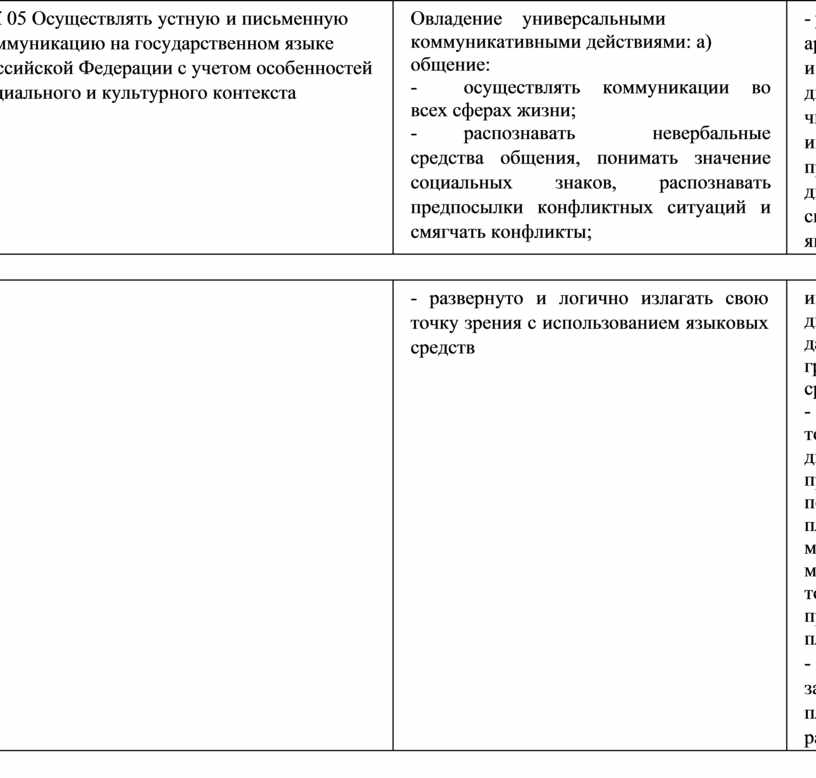 ОК 05. Осуществлять устную и письменную коммуникацию на государственном языке Российской Федерации с |