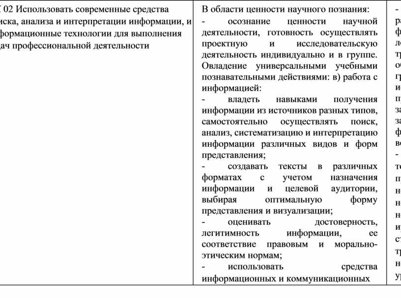 ОК 02. Использовать современные средства поиска, анализа и интерпретации информации, и информационные технологии для выполнения задач профессиональной деятельности |