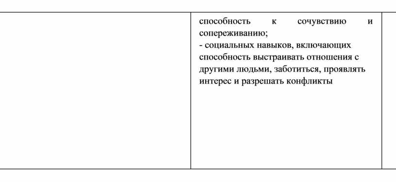способность к сочувствию и сопереживанию; - социальных навыков, включающих способность выстраивать отношения с другими людьми, заботиться, проявлять интерес и разрешать конфликты |