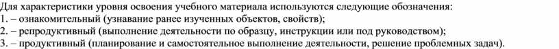 Для характеристики уровня освоения учебного материала используются следующие обозначения: