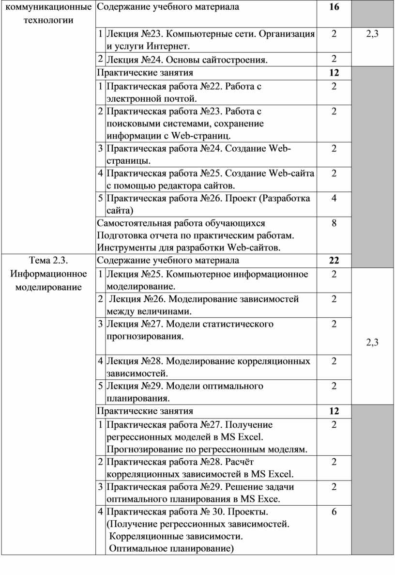 Теоретическая часть дисциплины строится на основе раскрытия содержания информационной технологии решения задачи, через такие обобщающие понятия как: информационный процесс, информационная модель и информационные основы управления.