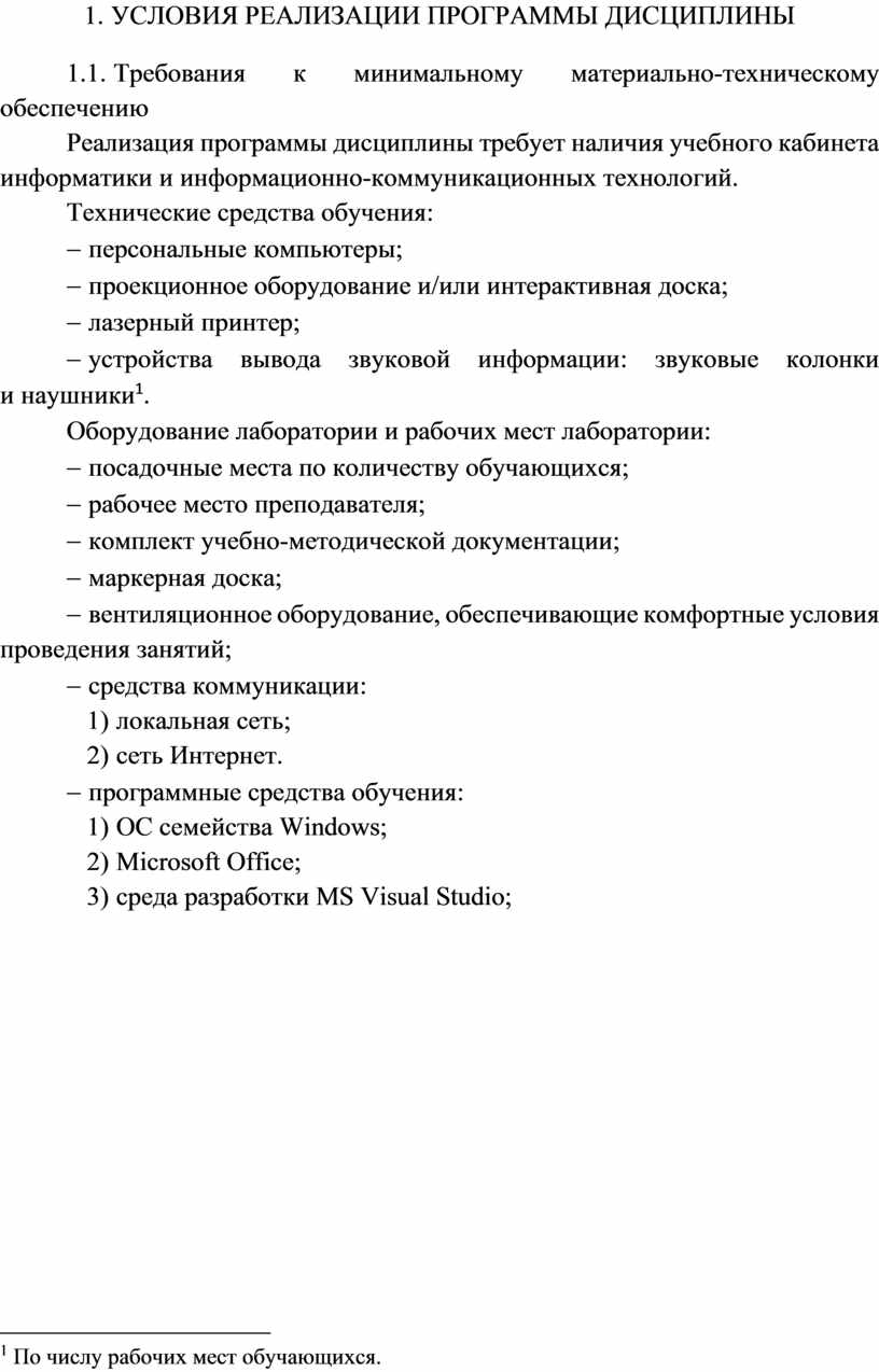 3. УСЛОВИЯ РЕАЛИЗАЦИИ ПРОГРАММЫ ДИСЦИПЛИНЫ