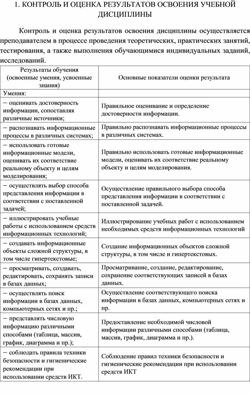 4. КОНТРОЛЬ И ОЦЕНКА РЕЗУЛЬТАТОВ ОСВОЕНИЯ УЧЕБНОЙ ДИСЦИПЛИНЫ