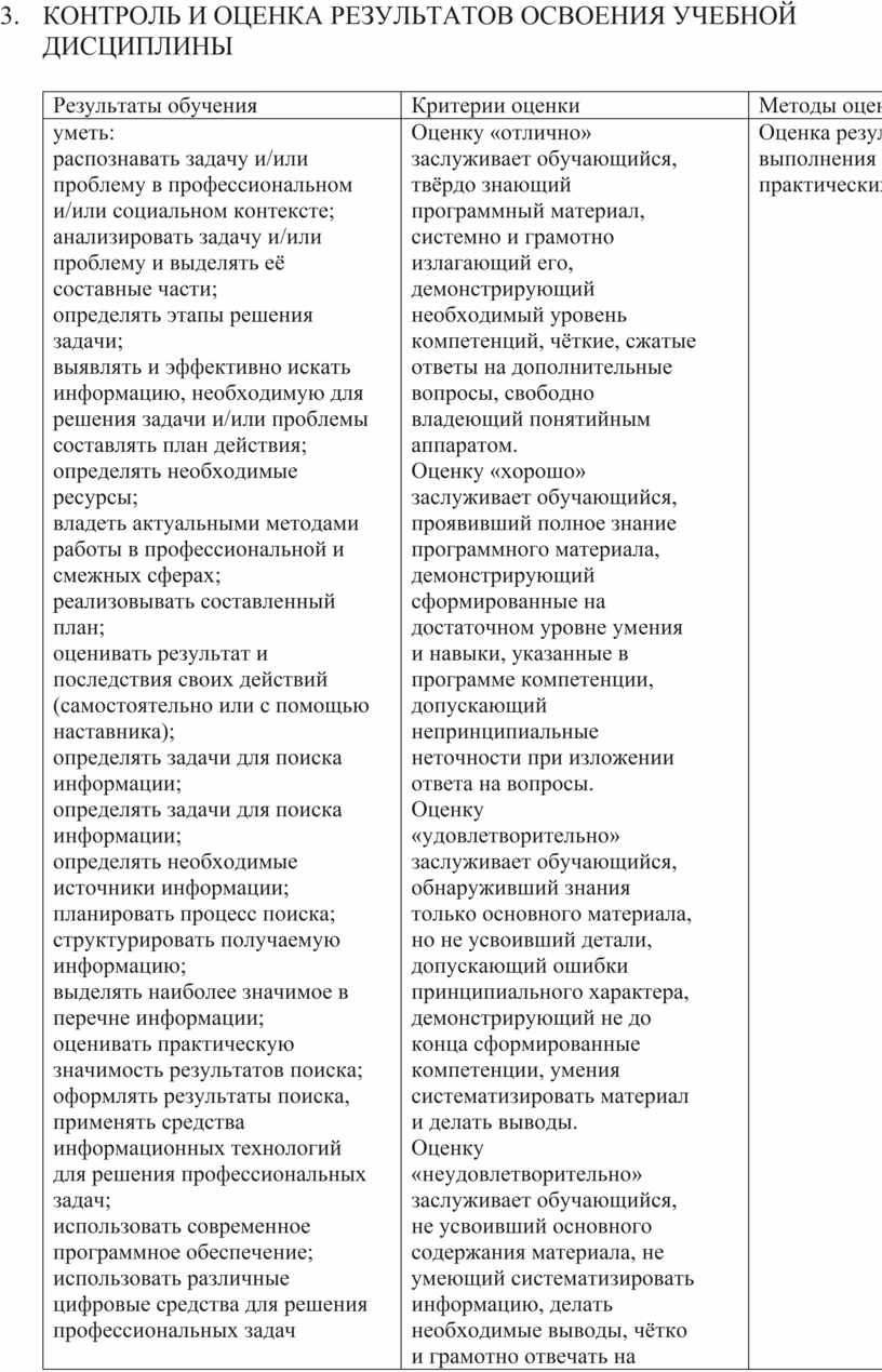 3. КОНТРОЛЬ И ОЦЕНКА РЕЗУЛЬТАТОВ ОСВОЕНИЯ УЧЕБНОЙ ДИСЦИПЛИНЫ