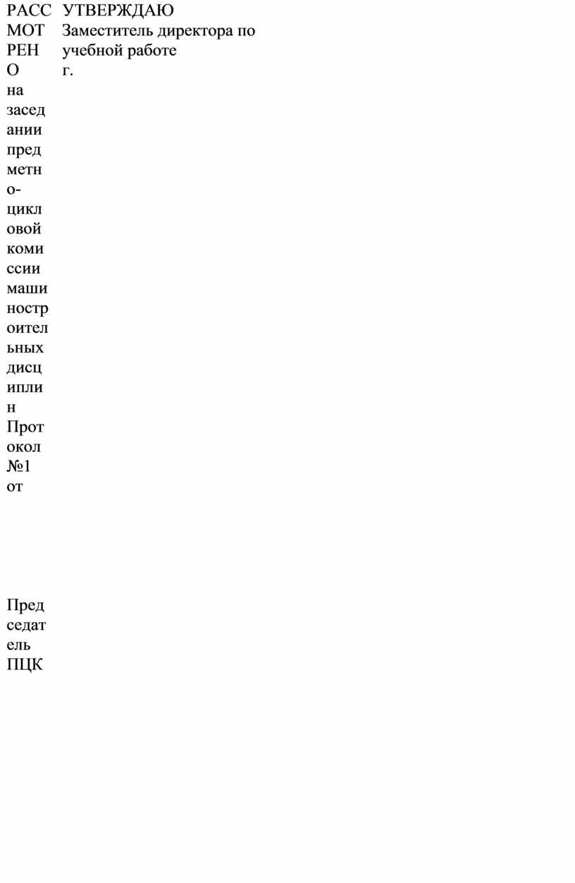 РАССМОТРЕНО на заседании предметно-цикловой комиссии машиностроительных дисциплин Протокол №1 от «__» _____ 202_г. Председатель ПЦК____________ |