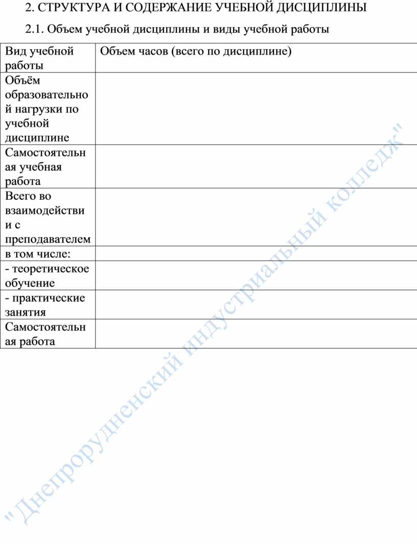 2. СТРУКТУРА И СОДЕРЖАНИЕ УЧЕБНОЙ ДИСЦИПЛИНЫ