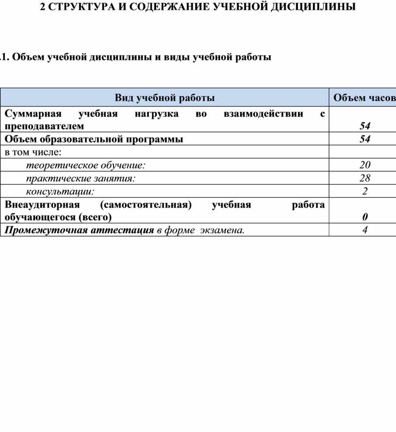 2 СТРУКТУРА И СОДЕРЖАНИЕ УЧЕБНОЙ ДИСЦИПЛИНЫ