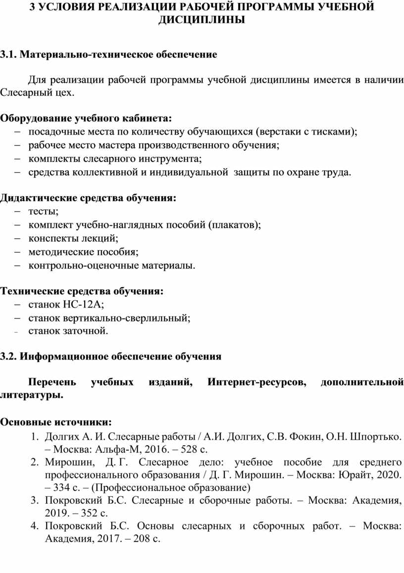 3. Покровский Б.С. Слесарные и сборочные работы. – Москва: Академия, 2019. – 352 с.