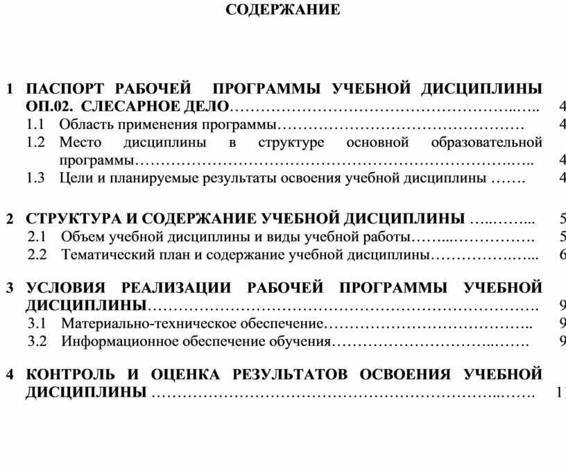 ПАСПОРТ РАБОЧЕЙ ПРОГРАММЫ УЧЕБНОЙ ДИСЦИПЛИНЫ ОП.02. СЛЕСАРНОЕ ДЕЛО………………………………………………..….. |