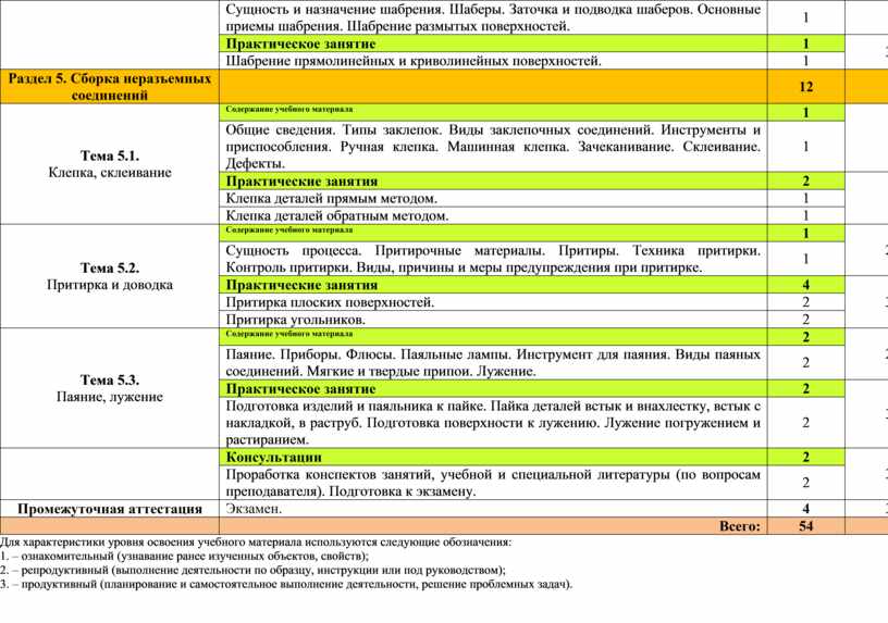 Для характеристики уровня освоения учебного материала используются следующие обозначения: