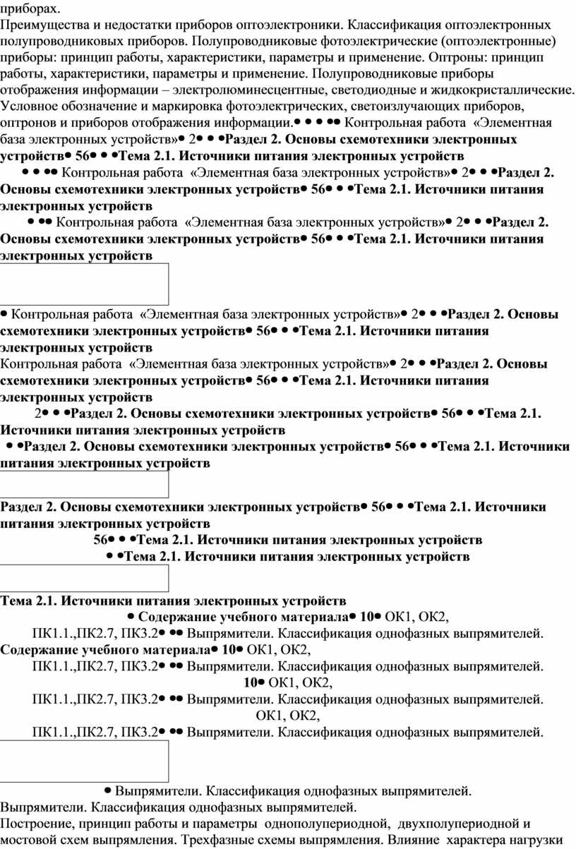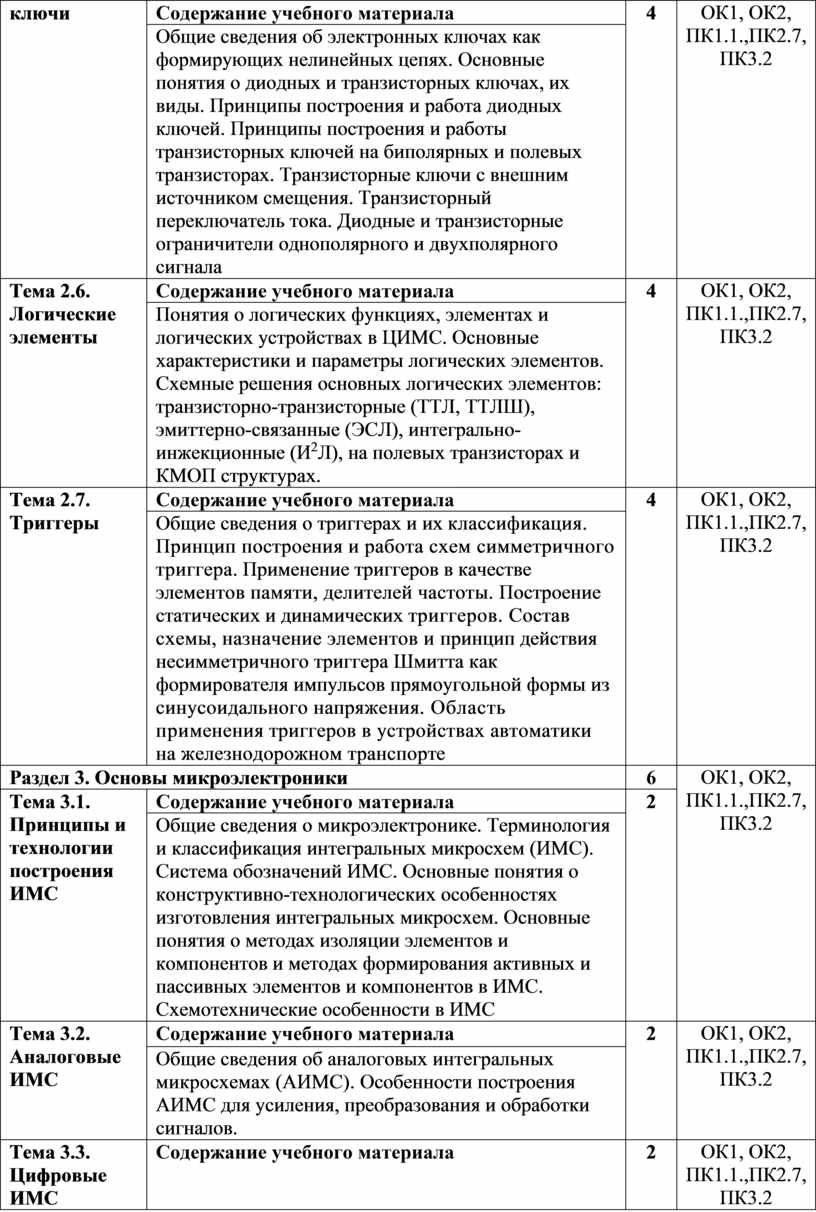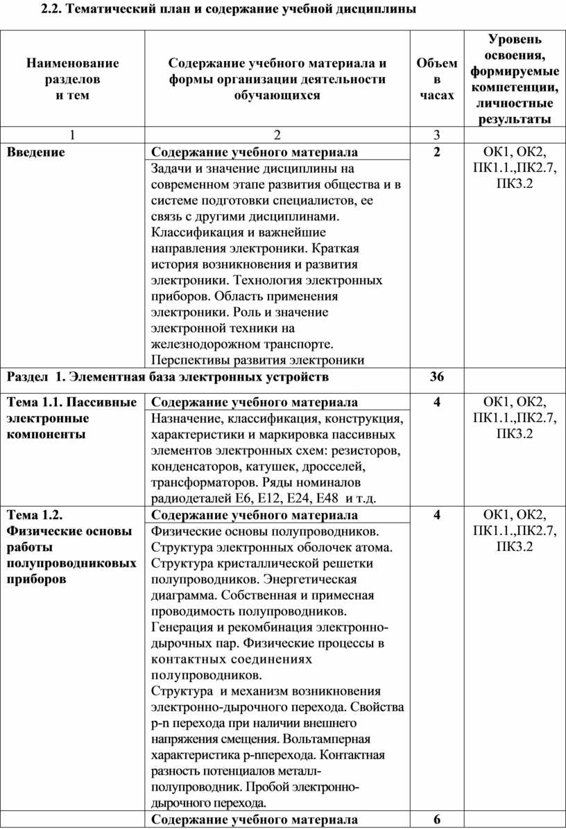 – сущность физических процессов, протекающих в электронных приборах и устройствах; – принципы включения электронных приборов и построения электронных схем; – типовые узлы и устройства электронной техники. ОК1,