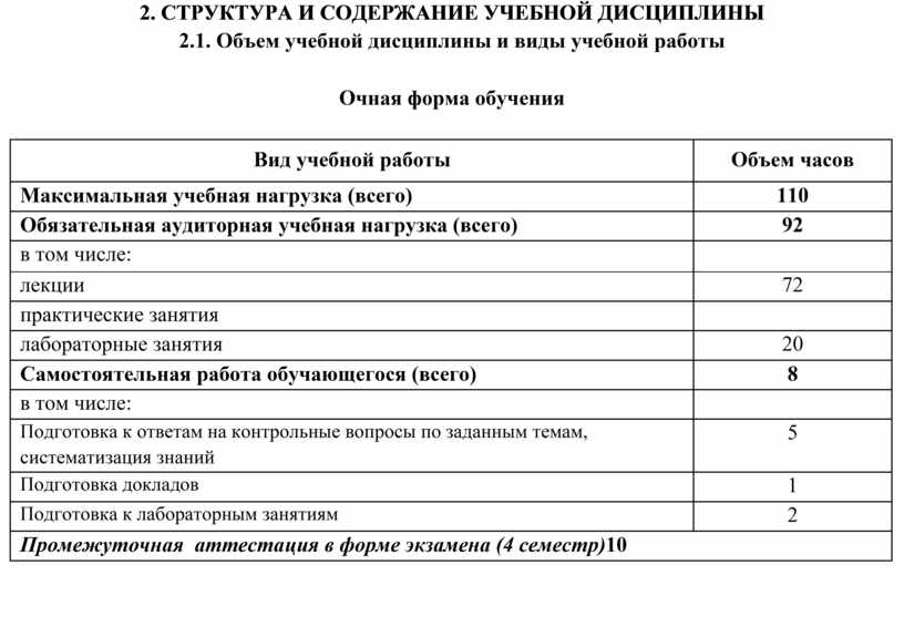2. СТРУКТУРА И СОДЕРЖАНИЕ УЧЕБНОЙ ДИСЦИПЛИНЫ