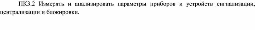 ПК3.2 Измерять и анализировать параметры приборов и устройств сигнализации, централизации и блокировки.