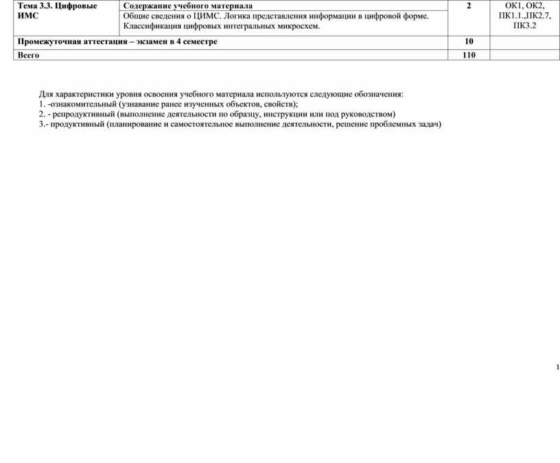 Для характеристики уровня освоения учебного материала используются следующие обозначения: