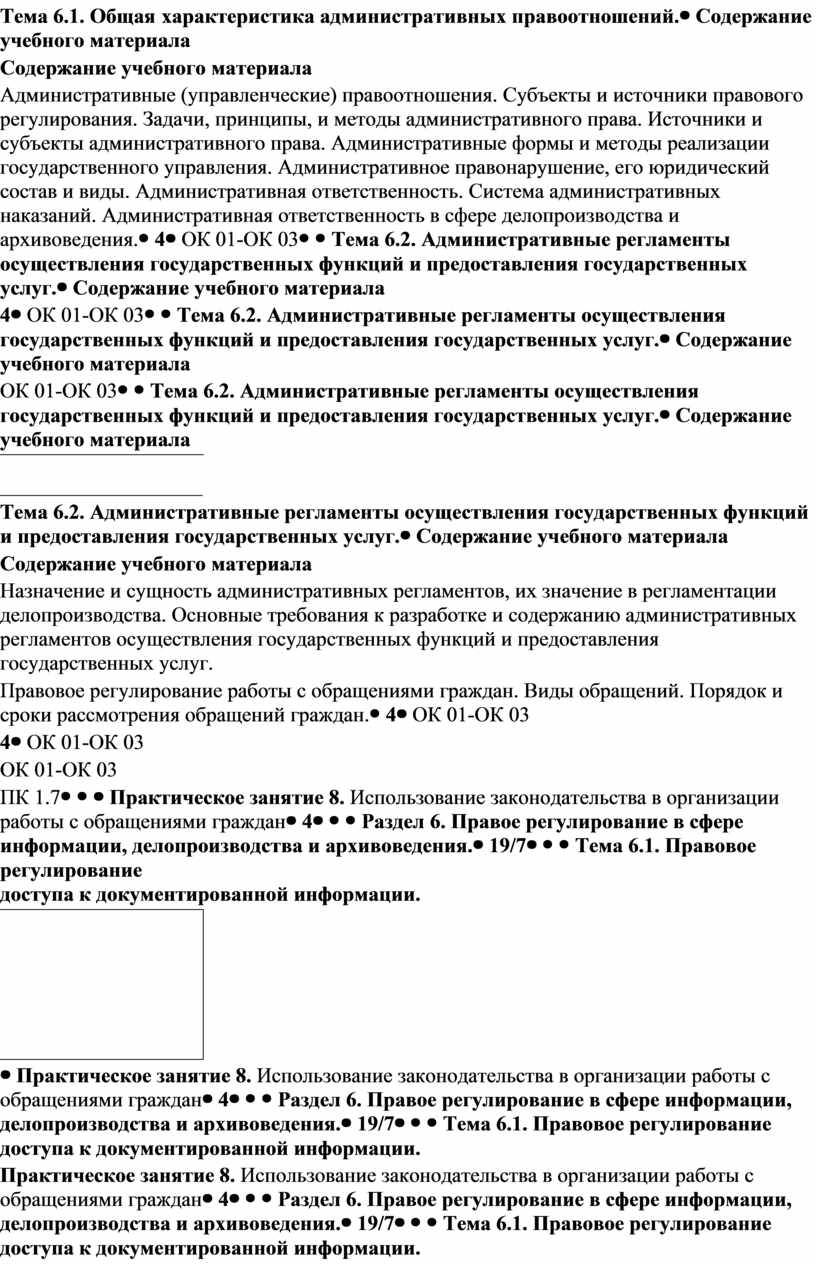 Раздел 6. Правое регулирование в сфере информации, делопроизводства и архивоведения. |