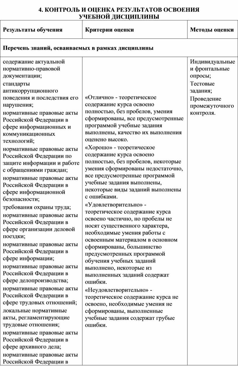 4. КОНТРОЛЬ И ОЦЕНКА РЕЗУЛЬТАТОВ ОСВОЕНИЯ УЧЕБНОЙ ДИСЦИПЛИНЫ