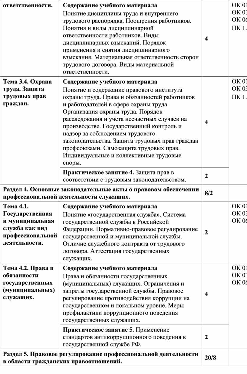 Раздел 4. Основные законодательные акты о правовом обеспечении профессиональной деятельности служащих. |