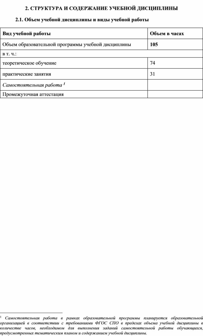 2. СТРУКТУРА И СОДЕРЖАНИЕ УЧЕБНОЙ ДИСЦИПЛИНЫ 3. УСЛОВИЯ РЕАЛИЗАЦИИ УЧЕБНОЙ ДИСЦИПЛИНЫ |