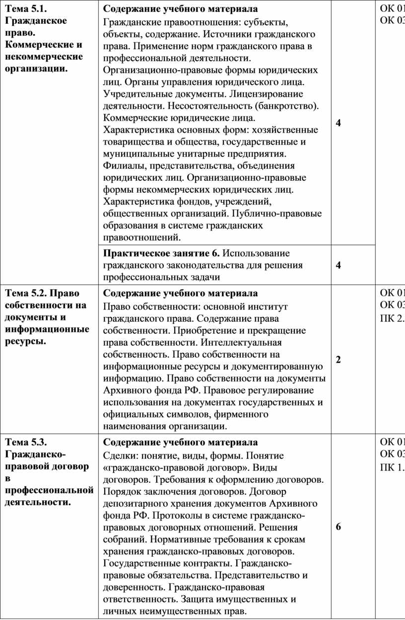 Раздел 5. Правовое регулирование профессиональной деятельности в области гражданских правоотношений. |