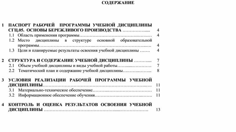 ПАСПОРТ РАБОЧЕЙ ПРОГРАММЫ УЧЕБНОЙ ДИСЦИПЛИНЫ СГЦ.05. ОСНОВЫ БЕРЕЖЛИВОГО ПРОИЗВОДСТВА ……………..... |