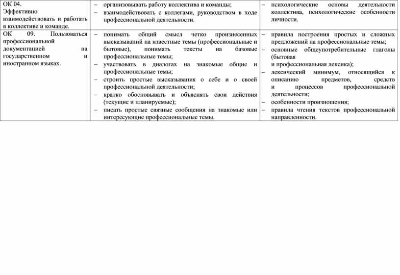 ОК 04. Эффективно взаимодействовать и работать в коллективе и команде. |