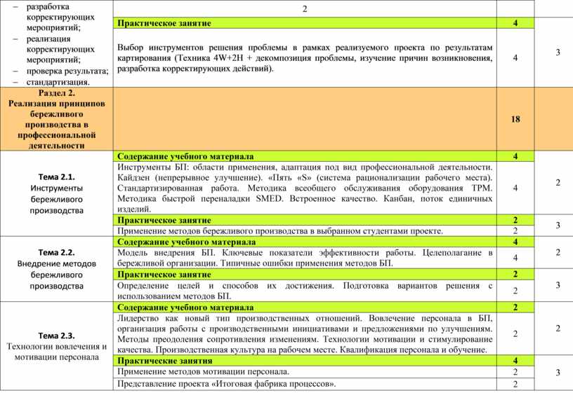 Раздел 2. Реализация принципов бережливого производства в профессиональной деятельности |